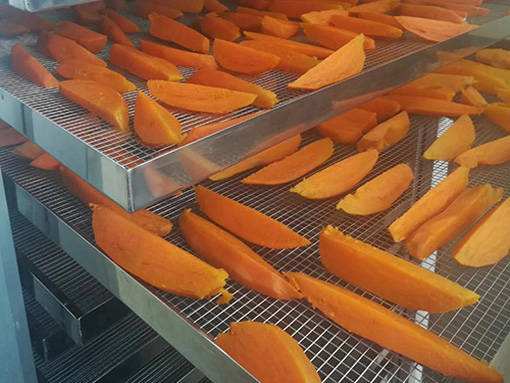 紅薯烘干要準(zhǔn)確掌握好紅薯的干度,可用口嚼時(shí)軟而綿,這樣硬度為適宜。如果烘干過(guò)干,吃時(shí)嚼不爛,影響其品質(zhì),但烘干不到位,水分多,容易生霉腐爛。根據(jù)使用我司小型紅薯干烘干機(jī)的客戶反饋的情況,紅薯干的烘干溫度不宜超過(guò)55℃,要分階段烘干,中間要讓紅薯干回軟。